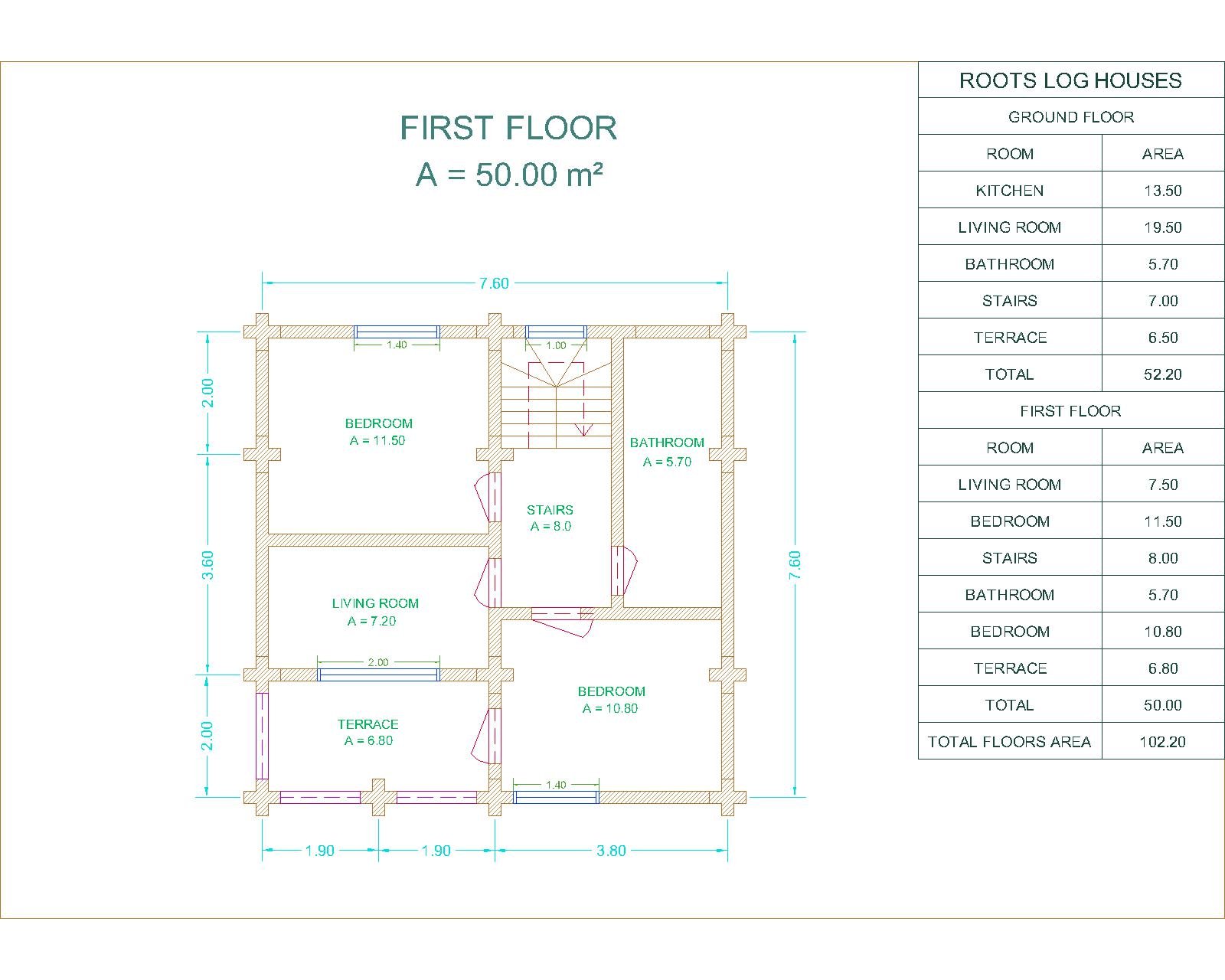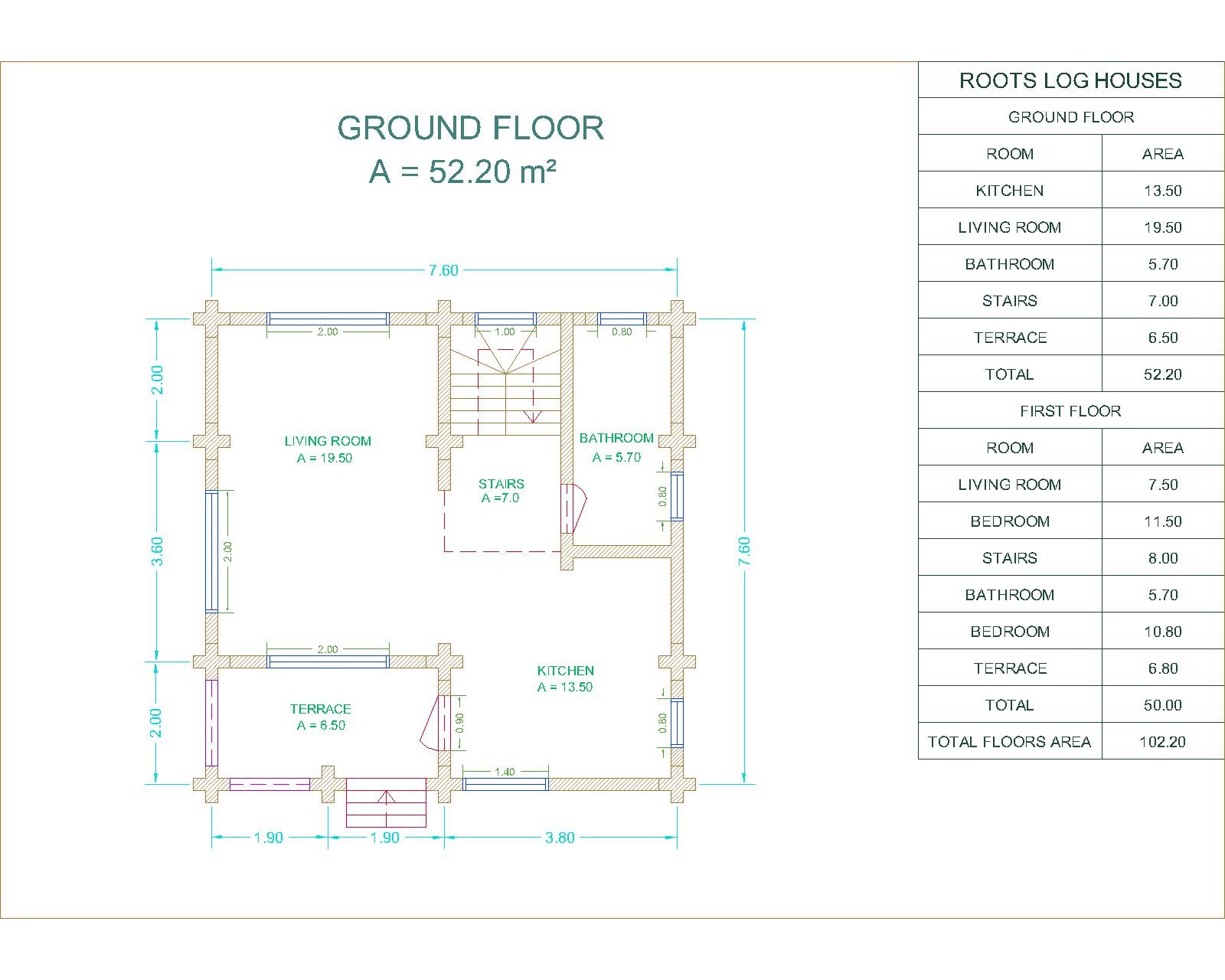 RL13 – 60.60 m2 Classic Round Log House with (2) living rooms, kitchen, (2) bedrooms, (2) bathrooms and (2) terraces. Floors area = 88.90 M² Terraces area = 13.30 M² Total area = 102.20 M² EXPLORE MORE MODELS Round log houses Square log houses Gazebo Get in touch