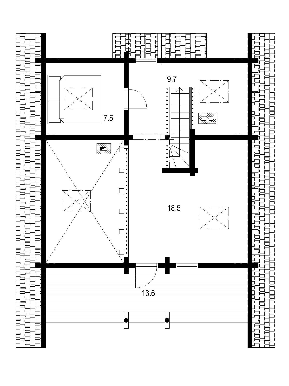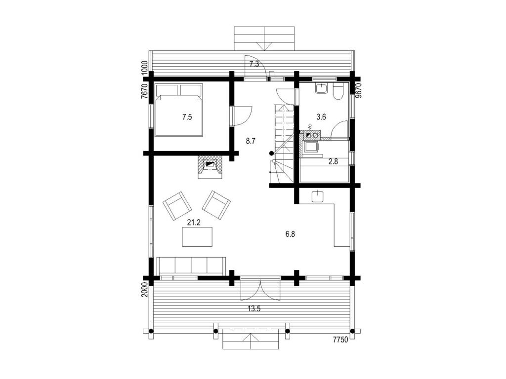 Classic Round Log House with kitchen – living room, (2) bedrooms, (1) bathroom, and (2) terraces.