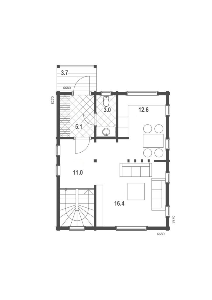 Sl12 – 104.20 m2 Modern square log house with kitchen, dining room, living room, (2) bedrooms and (2) bathrooms.Floor area = 91.30M²Terraces area = 3.70 M²Total area = 95.0 M² EXPLORE MORE MODELS Round log houses Square log houses Gazebo Get in touch